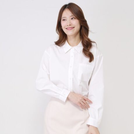上品で合わせやすいシャツアイテムです。