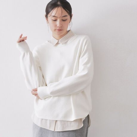 ・スウェットライクではありますがニット素材なので、カジュアルになり過ぎず大人っぽく着られます。