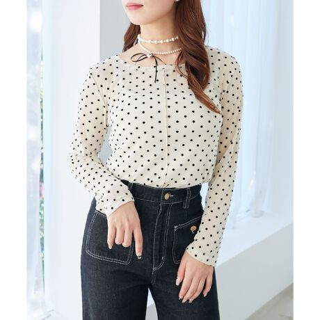 フロッキーのドットが入ったシアー素材を使用した、スタイリングのアクセントとして使えるアイテム。