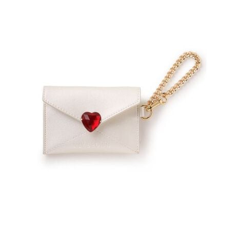 ラブレターをモチーフにした遊び心あふれるカードケース。フロントはドット釦式のフラップで、リップや小銭などの小物収納に便利なポケット付き。バックにはカードスリットを備えており、ICカードはもちろん、推しのトレーディングカードを入れて楽しむこともできます。収納力とデザイン性を兼ね備え、バッグに添えるだけで気分が高まるアイテムです。