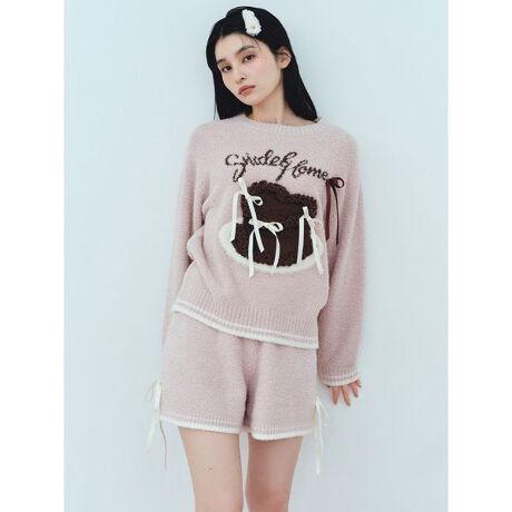 立体的なリボンやフリルでハート型のホールケーキを描いた、ジャガードニットプルオーバー&ショートパンツのWEB限定セットアップです。