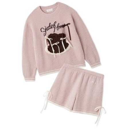 立体的なリボンやフリルでハート型のホールケーキを描いた、ジャガードニットプルオーバー&ショートパンツのWEB限定セットアップです。