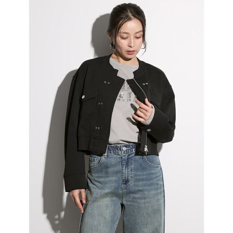 フロントに配したリベット使いが、シンプルな佇まいにほどよいエッジを添えるジップブルゾン。