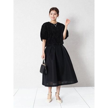 スカートは程よい厚みのあるシアーメッシュ素材を使用し、空気を含んだようなフレアシルエットが魅力。