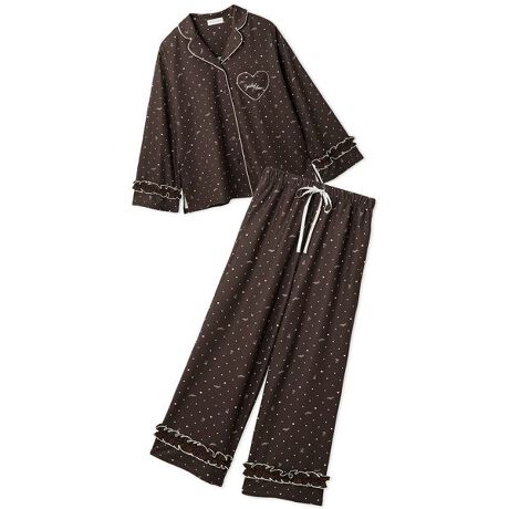 艶やかなレーヨンの生地が肌に寄り添う、ハートのドット柄を散りばめた開襟シャツ&ロングパンツのWEB限定セットアップです。