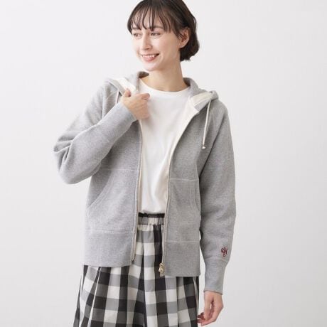 和歌山の吊り編み機を使用した吊り裏毛のフーデッドパーカー。