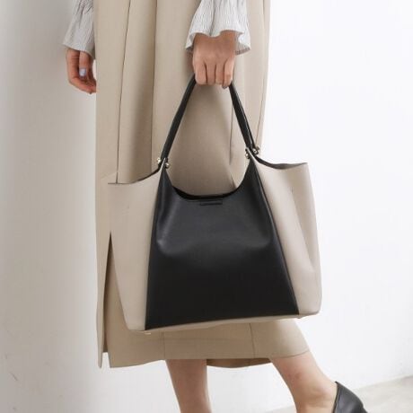 ハンドルのメタル使いが上品な肩掛けしやすいサイズのトートバッグ