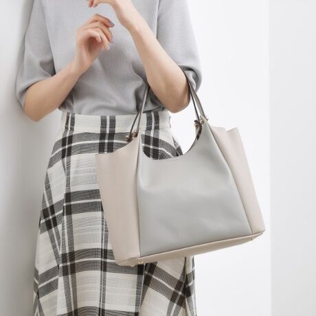 ハンドルのメタル使いが上品な肩掛けしやすいサイズのトートバッグ