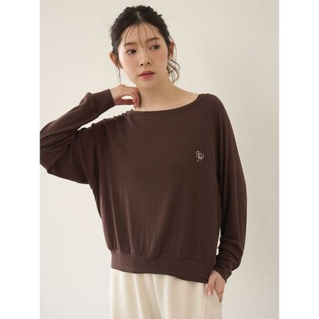 浅く広めに開けたネックラインは、少し肩が見えるくらいでルーズに女性らしく着られるところがポイントです。