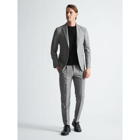 仕立て映えの良さと、ジャージ素材ならではの軽さ・伸縮性を併せ持つハイブリッドな素材感が最大の特徴。