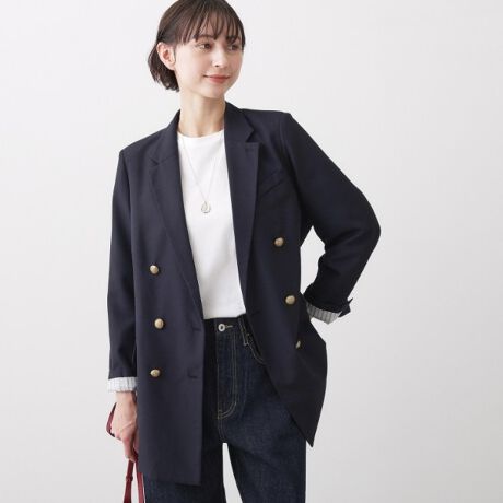 きちんと感のあるテーラードデザインにやや大きめのバランスを掛け合わせて羽織るだけで今っぽいシルエットに。