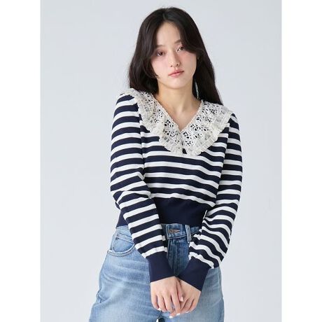 <b>【レースカラーが映えるヴィンテージムードのニットトップス】</b>