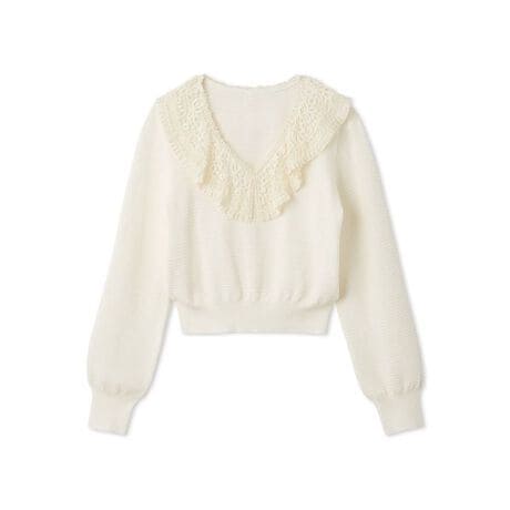 <b>【レースカラーが映えるヴィンテージムードのニットトップス】</b>