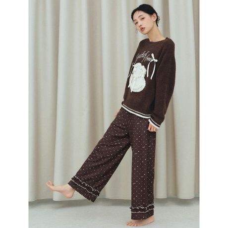 艶やかなレーヨンの生地が肌に寄り添う、ハートのドット柄を散りばめたロングパンツです。