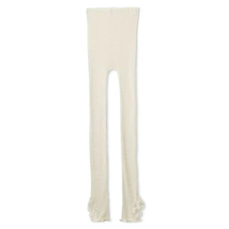裾のスリットにレースをあしらっているので、ワンピースやチュニック等のインナーにはくと足元に華やかなアクセントが生まれます。