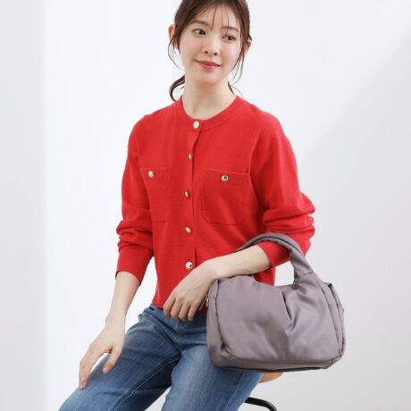 光沢感とふんわりとしたフォルムが魅力の撥水素材ショルダーバッグ。