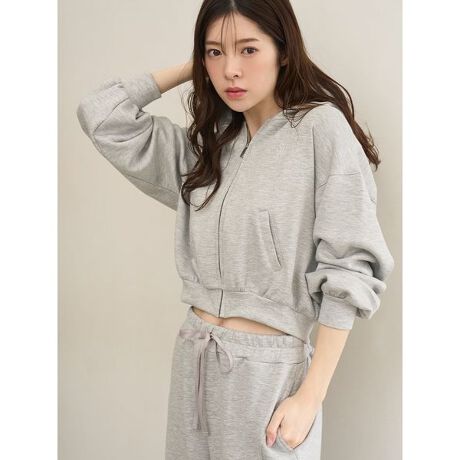 胸元にイニシャルロゴ刺繍をさりげなく入れた、ショート丈のジップパーカ。