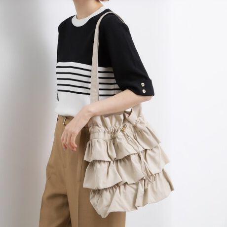 ナイロン素材で抜け感があり、かわいくなりすぎない大人フェミニンショルダー。