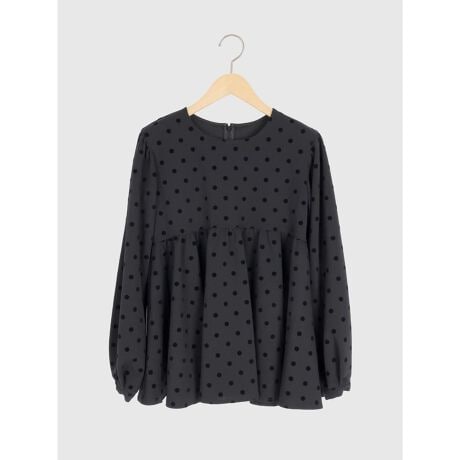上質感のあるフロッキードット生地が魅力のペプラムブラウス。