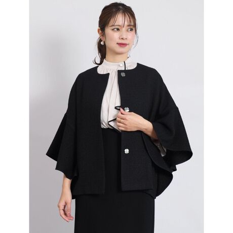袖にラッフルデザインを施した上品なミドル丈のツイードジャケット。