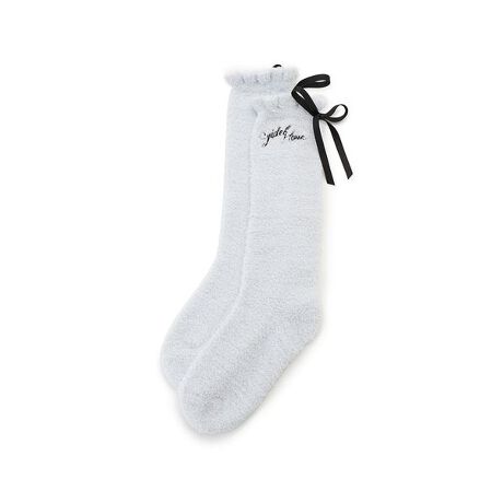 リボンとフリルのデコレーションで足元を華やかに彩る、ふくらはぎ丈のニットソックスです。
