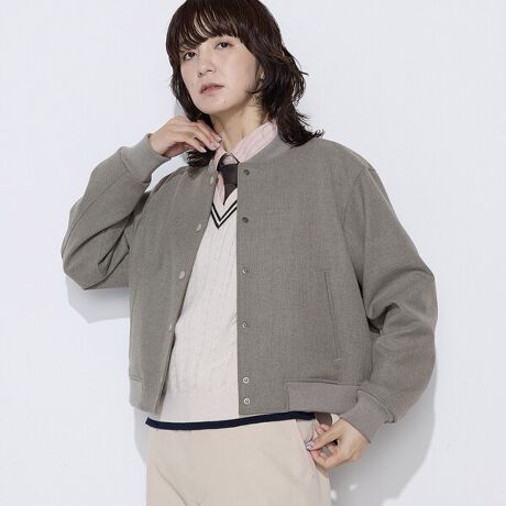 クロップド丈のスタジアムジャンパー型ブルゾンです。