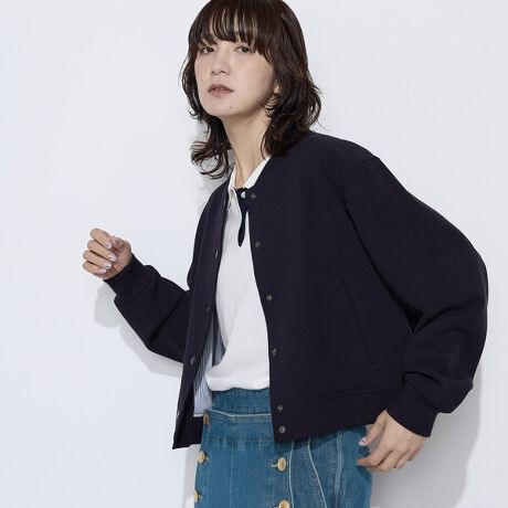 クロップド丈のスタジアムジャンパー型ブルゾンです。