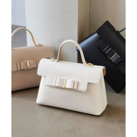 ・フロントにあしらわれた立体的なリボンベルトデザインが、甘さと上品さを両立。