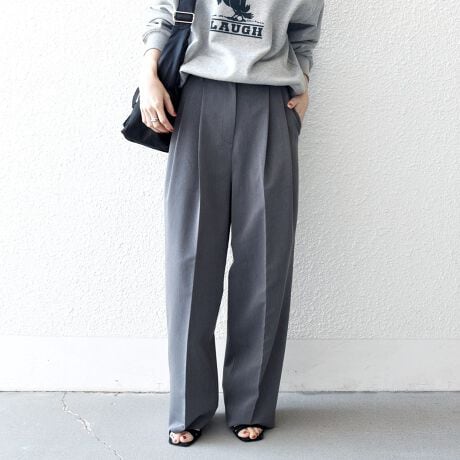 やや太めのベルト幅と2タックのワイドシルエットでマニッシュな印象のトラウザー。