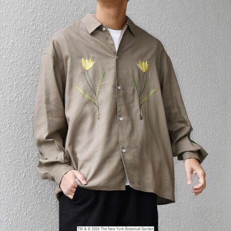 NYBG(The New York Botanical Garden)に別注した、フラワーモチーフの刺繍がポイントのシャツ