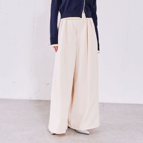 ・フロントのタックと太すぎないシルエットで美脚見え