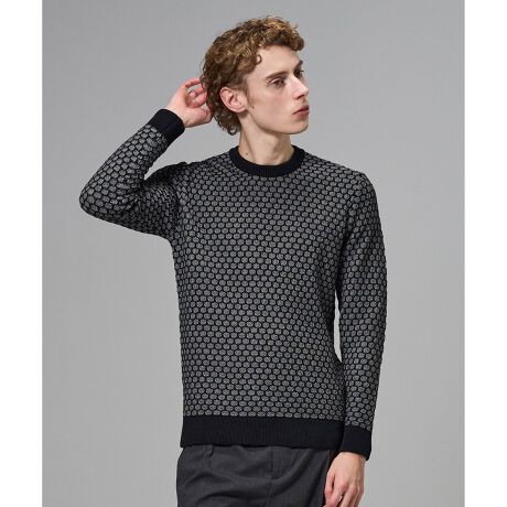 ニットの産地として知られる新潟県・五泉で丁寧に編み上げたミドルゲージニットは柄の立体感とほどよい存在感が魅力。