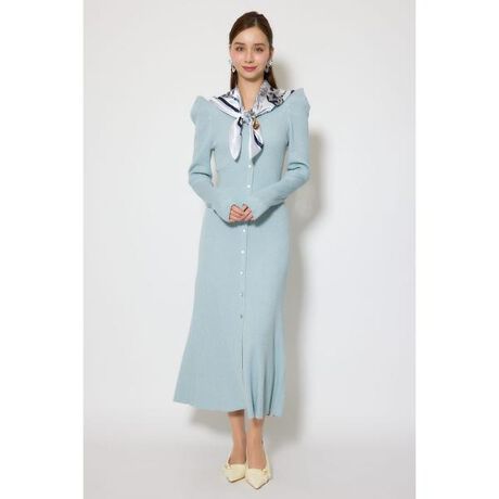 【1枚で美しさを叶えるスカーフセットボタンデザインワンピース】■ポイント顔まわりを華やかに演出する大判のスカーフとボタンデザインが目を引く、シンプルながらも洗練されたニットワンピース。リブの縦ラインがボディラインをすっきりと見せ、ウエストから裾にかけて自然に広がるマーメイドシルエットでスタイルアップ効果も抜群です。デコルテを美しく見せる胸元の程よい開きにもこだわりました。伸縮性のあるニット生地で着心地の良いアイテムです。■ディテールトレンドのパワーショルダーはあまり大きく見せすぎないデザインにしたのでサラッと取り入れることがでます。■スタイリング前後逆にしても着用できる2WAY仕様。スカーフは自由にアレンジしていただけます。■生地透け感:なし裏 地:なし伸縮性:あり光沢感:なし厚 さ:薄手□中肉■商品のお気に入り登録お気に入りアイテムの再入荷・在庫1点などの通知を受け取ることができます。[注意事項]※画像の商品はサンプルです。実際の商品と仕様、加工が若干異なる場合があります。※画像の商品は光の照射や角度、お使いのモニター環境により、実物と色味が異なる場合がございます。※着用、お取り扱いの際は、アテンションタグをご確認ください。