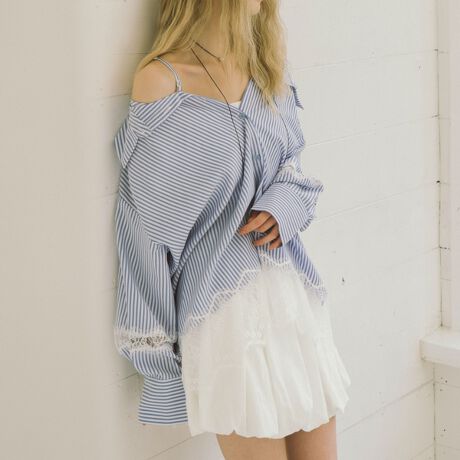 ■レースで魅せる、2wayオフショルシャツ■