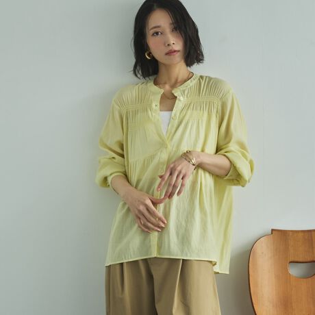 ・生地が細かく寄せられたシャーリングが柔らかいシルエットになり、華やかな印象を演出