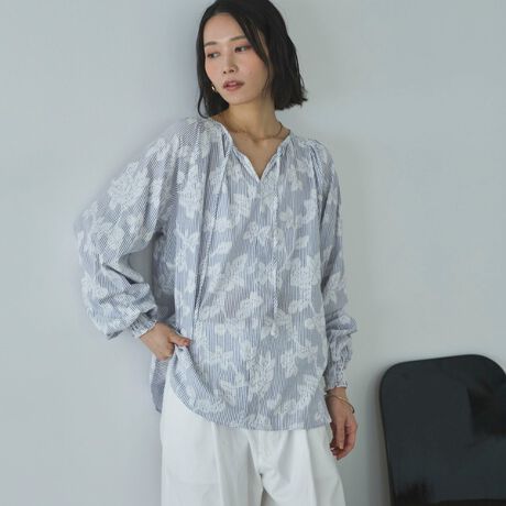 ・甘すぎない柄でシーンを問わず着用しやすいジャガードブラウス