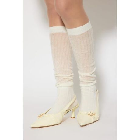 【煌びやかなホットフィットがポイントのシアーソックス】■ポイントシアーの繊細な編み地に煌びやかな小さいストーンがホットフィットで施されているソックス。■ディテール軽くルーズソックス風にもできたり、伸ばしてハイソックスでも履けるので、その時のコーディネートに合わせてください。■スタイリングミニ丈のワンピースやボトムスに対して、ミュールやパンプスで合わせていただくのが今時でおすすめです。■生地透け感:あり裏 地:なし伸縮性:あり光沢感:なし(ホットフィットのキラキラ)厚 さ:なし■商品のお気に入り登録お気に入りアイテムの再入荷・在庫1点などの通知を受け取ることができます。[注意事項]※画像の商品はサンプルです。実際の商品と仕様、加工が若干異なる場合があります。※画像の商品は光の照射や角度、お使いのモニター環境により、実物と色味が異なる場合がございます。※着用、お取り扱いの際は、アテンションタグをご確認ください。