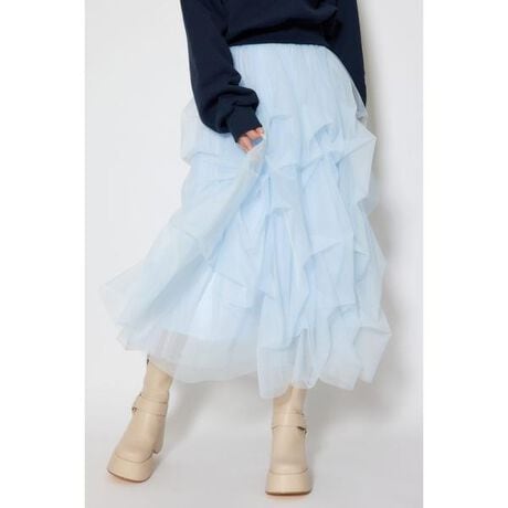 【新色登場!ロマンティックな雰囲気漂う、着映え抜群のチュールスカート!】■ポイント贅沢にチュール生地を使用したボリューム感が魅力の目を惹くチュールスカート。生地を2枚重ねることで、甘さを抑えて上品な立体感を演出します。■ディテールランダムに入れたタックが生み出すニュアンスのあるシルエットは、どの角度から見ても美しく、動きあるデザインに仕上げました。■スタイリングスタイリングのアクセントになるデザインなのでトップスにはシンプルなアイテムがオススメです。綺麗めなブラウスやニットと合わせた女性らしいフェミニンなスタイリングからシンプルなトレーナー等と合わせてカジュアルなスタイリングまで、シーンに合わせて幅広いコーディネートを楽しんでいただけます。■生地透け感:あり裏 地:あり伸縮性:なし光沢感:なし厚 さ:薄手■商品のお気に入り登録お気に入りアイテムの再入荷・在庫1点などの通知を受け取ることができます。[注意事項]※画像の商品はサンプルです。実際の商品と仕様、加工が若干異なる場合があります。※画像の商品は光の照射や角度、お使いのモニター環境により、実物と色味が異なる場合がございます。※着用、お取り扱いの際は、アテンションタグをご確認ください。