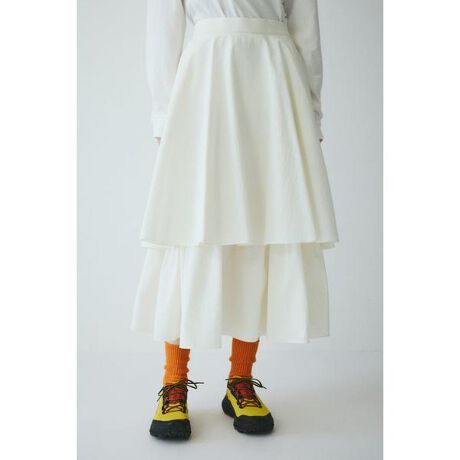 2枚仕立ての立体感のあるシルエットスカート歩くたびに軽やかに揺れ動き、とても表情感があります。ウエストはゴムになっており、ストレスなく着用できます。存在感があるのでシンプルなトップスと合わせるだけでスタイリングが決まります。ダブルヘムスカート[注意事項] ※画像の商品はサンプルです。実際の商品と仕様、加工が若干異なる場合があります。 ※画像の商品は光の照射や角度、お使いのモニター環境により、実物と色味が異なる場合がございます。 ※着用、お取り扱いの際は、アテンションタグをご確認ください。