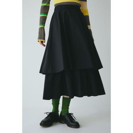 2枚仕立ての立体感のあるシルエットスカート歩くたびに軽やかに揺れ動き、とても表情感があります。ウエストはゴムになっており、ストレスなく着用できます。存在感があるのでシンプルなトップスと合わせるだけでスタイリングが決まります。ダブルヘムスカート[注意事項] ※画像の商品はサンプルです。実際の商品と仕様、加工が若干異なる場合があります。 ※画像の商品は光の照射や角度、お使いのモニター環境により、実物と色味が異なる場合がございます。 ※着用、お取り扱いの際は、アテンションタグをご確認ください。