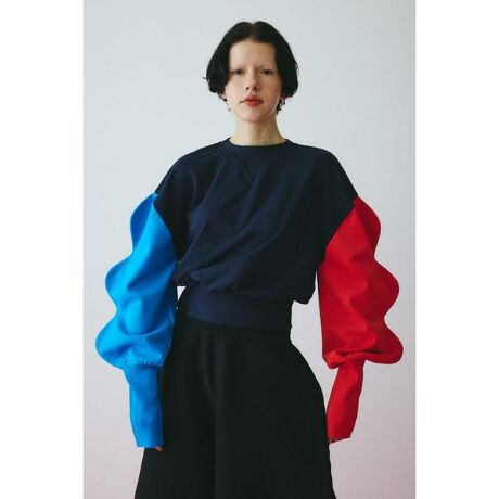 身頃は裏毛素材、スリーブはニットの異素材コンビネーショントップススリーブの山のようなデザインはHeRINならではのデザイン。パンツでもスカートでも合わせやすいサイズになっています。マウンテンスリーブトップス[注意事項] ※画像の商品はサンプルです。実際の商品と仕様、加工が若干異なる場合があります。 ※画像の商品は光の照射や角度、お使いのモニター環境により、実物と色味が異なる場合がございます。 ※着用、お取り扱いの際は、アテンションタグをご確認ください。