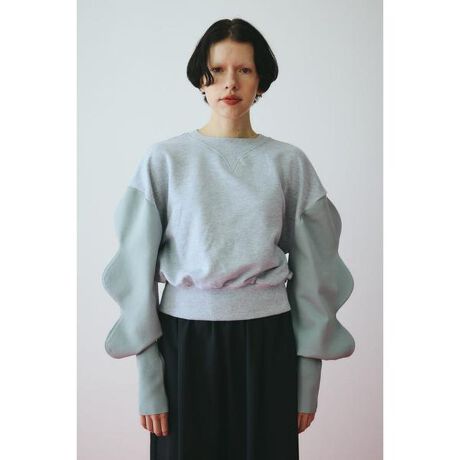 身頃は裏毛素材、スリーブはニットの異素材コンビネーショントップススリーブの山のようなデザインはHeRINならではのデザイン。パンツでもスカートでも合わせやすいサイズになっています。マウンテンスリーブトップス[注意事項] ※画像の商品はサンプルです。実際の商品と仕様、加工が若干異なる場合があります。 ※画像の商品は光の照射や角度、お使いのモニター環境により、実物と色味が異なる場合がございます。 ※着用、お取り扱いの際は、アテンションタグをご確認ください。