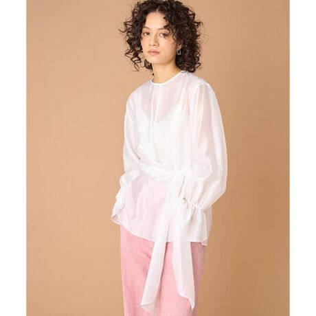 ■デザインクルーネックで、前身頃がツイスト(ねじり)されたラップデザイン。ウエスト部分には共布のタイ(ベルト)がついており、前で結んでフィット感を調節できます。袖口は広がったフリルデザインが特徴的です。エレガントでモダンな雰囲気で、カジュアルからビジネスシーンまで幅広く活用できます。■素材ほんのり透け感があり爽やかな印象を与えてくれる、新しいオーガンジー素材。従来のオーガンジーと違い風合いがソフトなテンセルを使っているため肌に心地よくナチュラルなタッチが特徴です。透明感のある軽やかな質感とやさしいハリ感で新しいコーディネートを楽しめます。・バックボタンあり・水洗い可■下げ札サイズ表記2=(M/9号)■サンプル撮影商品画像の商品はサンプルです。実際の商品とはサイズや色味、素材、デザイン等の仕様が若干変更になる場合がございます。■カラーについては、可能な限り実際の商品に近いカラーで撮影をおこなっておりますが、照明の関係により実際の製品とは色味が違って見える場合があります。またパソコン・スマートフォンなどの環境により、若干製品と画像のカラーが異なる場合もございます。現物と画像のカラー差異については返品理由となりませんので、予めご了承ください。■サイズ表記はあくまで目安となります。