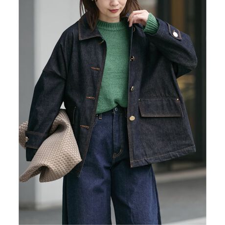 女性らしいAラインフォルムでシーンやスタイルを選ばないデザインの、カジュアルな雰囲気とエレガンスを兼ね備えたデニムジャケットコートが登場