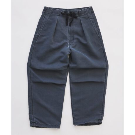 ミリタリーパンツの王道であるファティーグパンツをベースに、大胆な加工とオーバーシルエットで再構築。
