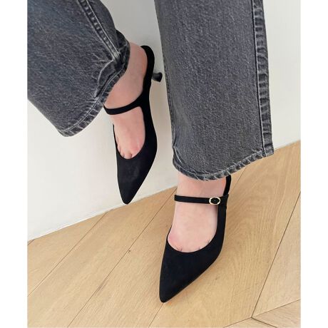 すっきりとしたポインテッドトゥと、くびれたシルエットがキレイ見えの4.5cmヒールで上品に履けるミュールパンプスです。