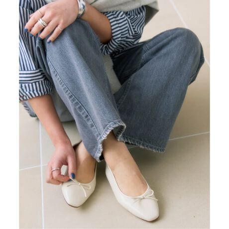 ポインテッドやラウンドではなく、フレンチスクエアのスッキリとしたトゥ先が甘くなりすぎずに大人のバレエシューズとして履いていただけます。