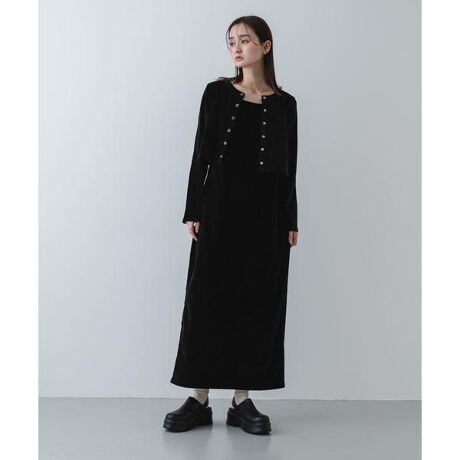 【気品漂う光沢。ベロアカーデ×ワンピースセット】