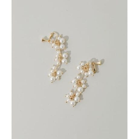 大小のパールとメタルビーズをランダムにあしらったロングイヤリングです。