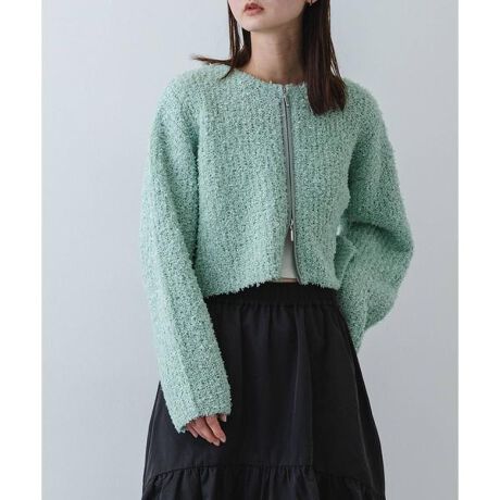 2種類の異なる糸を組み合わせることで、立体的な表面感を生み出したジップアップニット。形自体は無駄を削ぎ落としたシンプルな設計にすることで、素材そのものの個性が引き立つ一着に仕上げました。最大の特徴は、上下から開閉可能なダブルジップ仕様。下部分を少し開けてボトムスとのバランスを調整したり、首元を開けてレイヤードを楽しんだりと、コーディネートに合わせて多彩な着こなしが可能です。程よい肉厚感があり、季節の変わり目の軽アウターとしても重宝します。